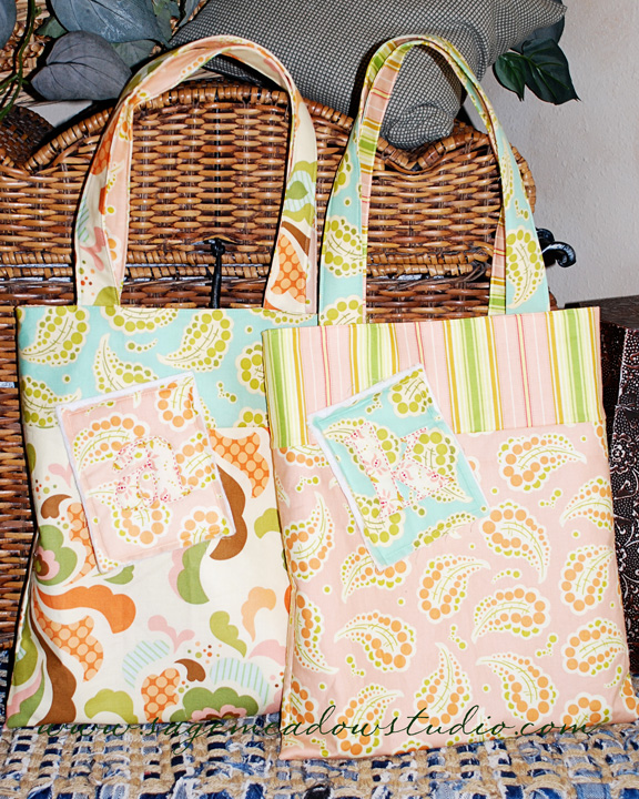 Two of my nieces are taking piano lessons (Yay! I wish them much more success than I achieved on the lovely instrument!), and my sister in-law asked if I’d have time to make some bags to tote their music books. It took much longer than I intended to get them finished…but I had a lot of fun with them.