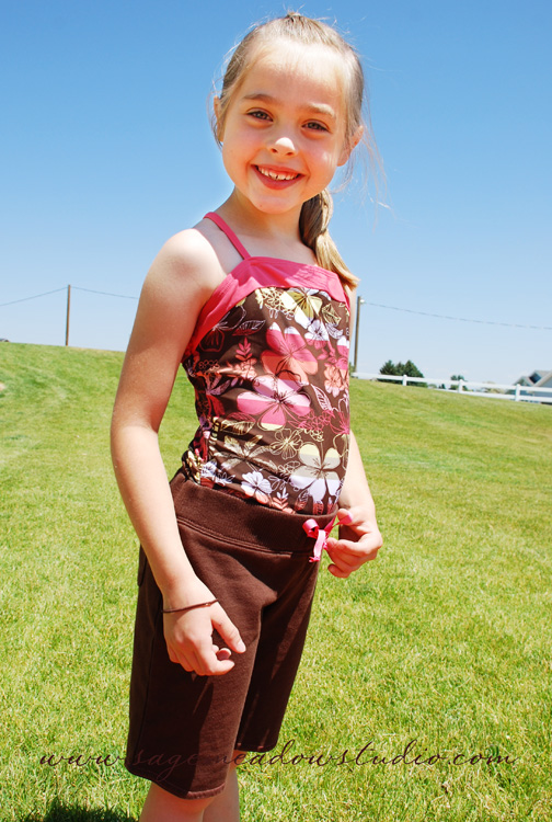 I re-stitched the back label to secure the drawstring, threw the finished shorts on the girl and we ran for the car!