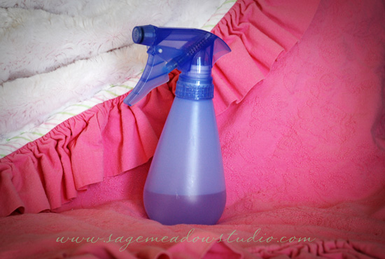 I woke this morning to a lovely surprise: 2-year-old Miss M and her entire bed looked like they’d been beaten to a pulp in the night. She is a bit prone to bloody noses (“nogies” in Miss M speak), and has had a few in the last couple days, but the collateral damage hasn’t been quite so extensive as it was today. Fortunately, I’ve come up with a simple trick for cleaning up that seems to work well: a few shots of hydrogen peroxide from a spray bottle loosens everything up enough that it washes right out. What are your favorite stain removal tips?