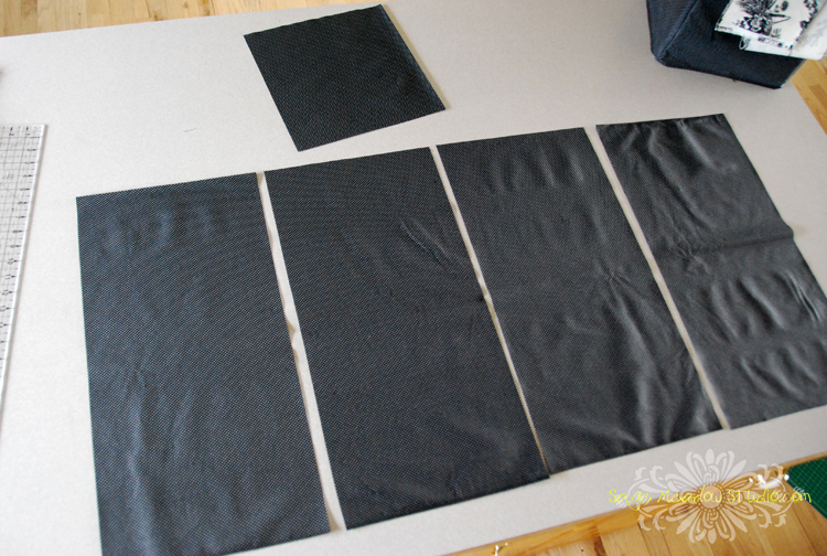 Sides: (inside length + outside length +1/2″ for seam allowances) x (width + 1/2″ for seam allowances), so my 4 cut pieces each measured 11″ by 22.5″.