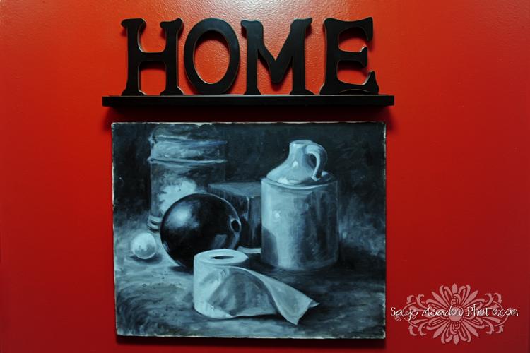 A couple years ago Audrey and I went shopping at the Trackside Mall in Idaho Falls and came across this canvas. Sometimes I wonder why I bought this piece of art to hang above the toilet in my half bath, but then someone comes out of there laughing, and I remember. I admit it is kinda funny and SO random. Tonight Audrey went to turn off the light in this bathroom and started chuckling because she had forgotten about it.