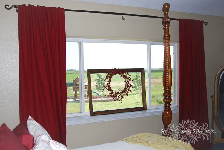 The window looks awesome! My hubby would have complained about being able to open the window too—-that’s why I had him hang it by chains. I’ve changed it since that photo. Now it’s backed with cream colored burlap. It’s been a great way to have a little privacy and still get some sunlight.