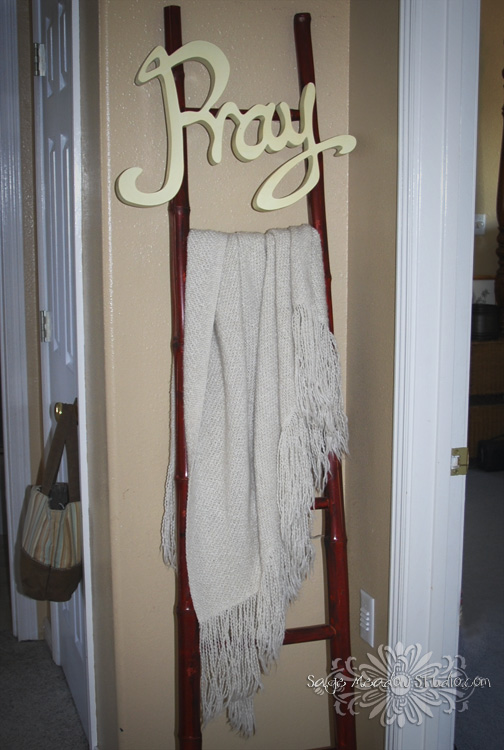 More from my decor overhaul this past weekend…my little red ladder needed a little something up top, and the sign needed to be in a better place: now it’s out in the open to remind me more effectively!
